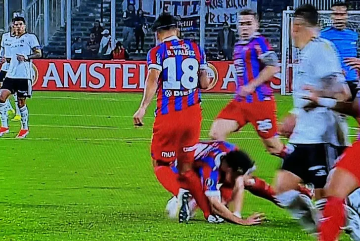 En una pelota disputada en el ataque de Colo Colo, hubo un choque accidental entre el mediocampista Jorge Morel y el zaguero central Bruno Valdez quien se llevó la peor parte.