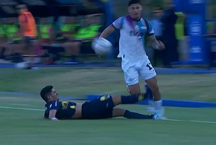 Lo más impactante del partido fue cuando a los 37 minutos del primer tiempo, el lateral derecho de Trinidense; Víctor Dávalos cometió una dura infracción sobre Matías Espinoza.