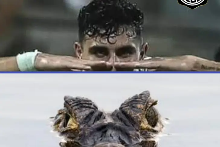 Se trata de un cocodrilo que va saliendo del agua dejando a la luz la mirada de acecho a su víctima, en una celebración que ya lo venía haciendo en la categoría reserva y lo hace ahora en primera división.
