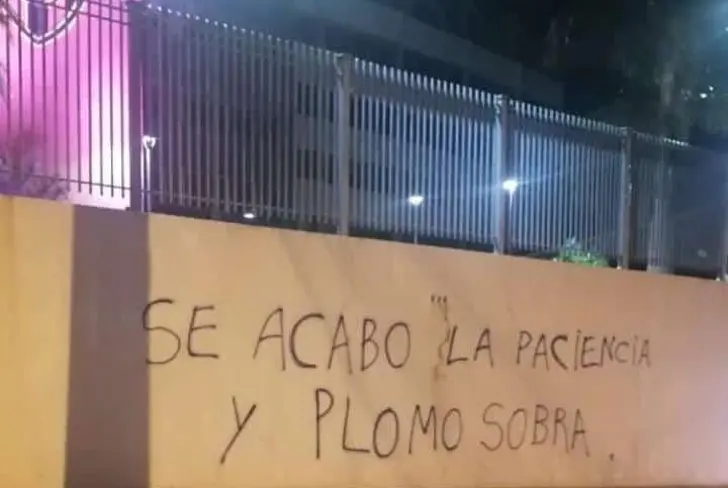 En los alrededores de La Nueva Olla que a su vez es la concentración aparecieron mensajes amenazantes como "Se acabó la paciencia y el plomo sobra", en evidente muestra de fastidio de una parte de la afición.