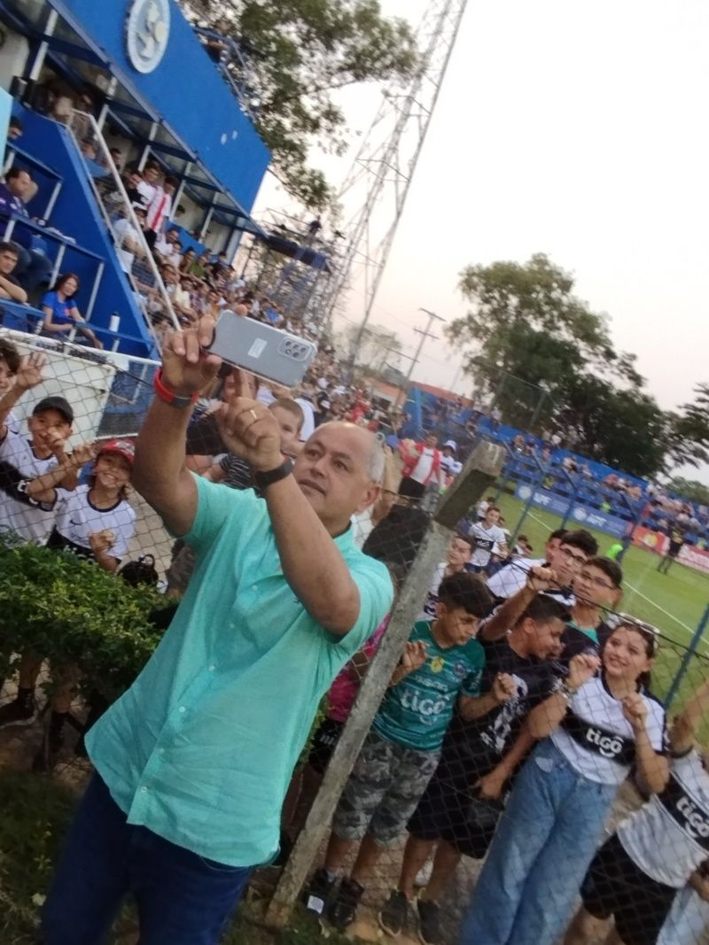Cuando era todo alegría en el estadio por parte de los olimpistas, antes del inicio del juego, los hinchas apostados cerca del banco de suplentes de Olimpia, pidieron una foto con el entrenador Francisco Arce.