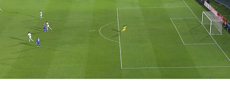 Para mala suerte del guardameta, su remate salió muy mal y termino en los pies del potente delantero, quien rápidamente encaró al arco y disparó de media distancia para convertir la igualdad parcial.