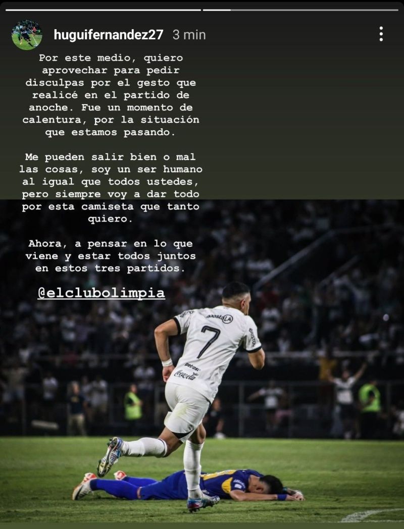 El jugador que terminó siendo el héroe de la jornada, sacó un comunicado en su cuenta oficial de Instagram en la sección de historias donde pidió disculpas por el gesto.