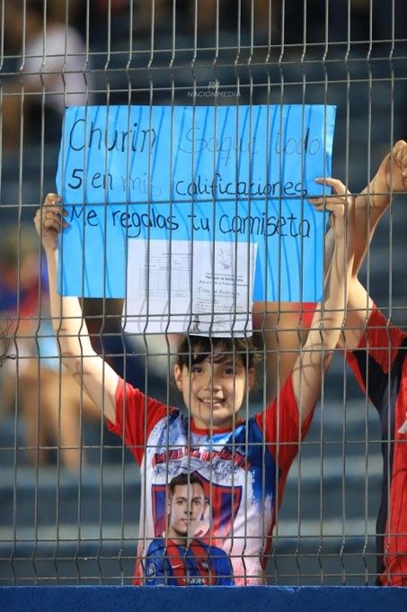 La pequeña aficionada imprimió su boleta de calificaciones con un cartel y el mensaje de ‘Churín, saqué todo 5, quiero tu camiseta’, en la previa del partido del Ciclón ante Guaireña por la primera fecha del campeonato.