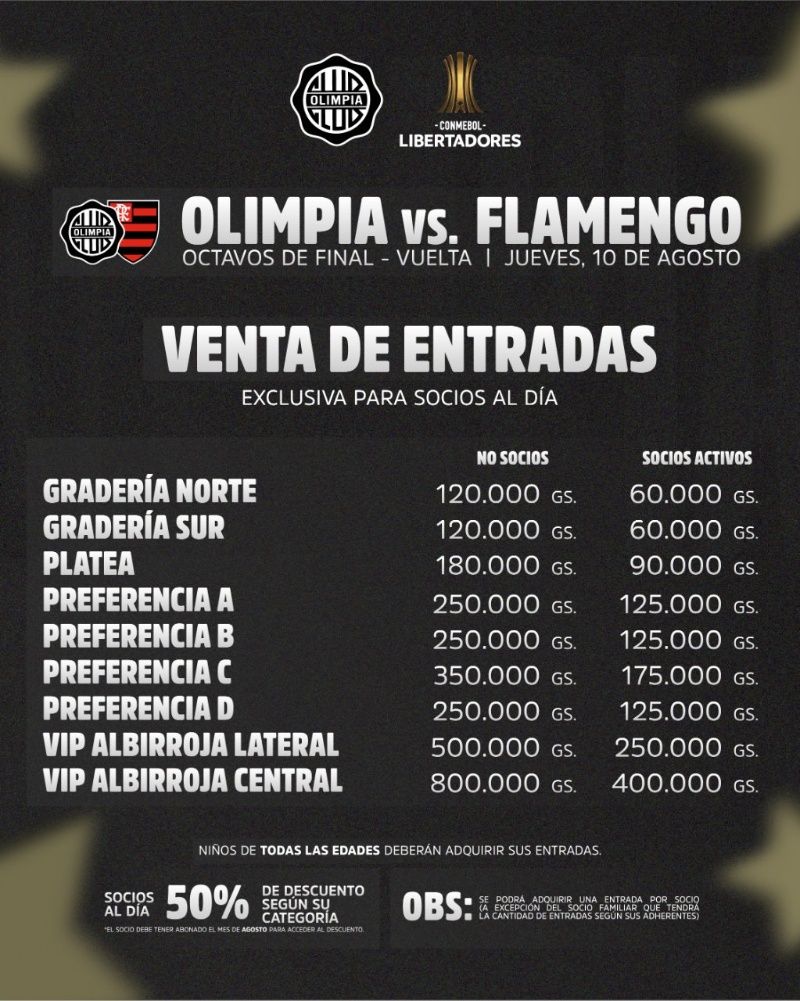 Olimpia ya anunció los precios de las entradas y recibió muchas críticas debido al excesivo costo para los no socios con un incremento del 100% en relación a los que están asociados.