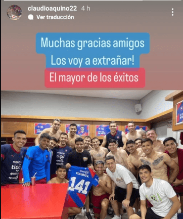 El jugador en su cuenta personal subió una foto con sus ex compañeros con el mensaje: ‘Los voy a extrañar mucho, éxitos’, posando con la camiseta que le regaló la institución con el número 141 en referencia a la cantidad de partidos jugados con Cerro Porteño donde marcó 33 goles.