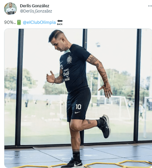 La afición de Olimpia está contenta con la última publicación de su máxima figura, Derlis González en sus redes sociales.