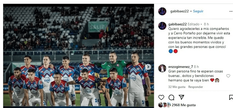 Precisamente, el futbolista se despidió del club en Instagram con el texto: ‘Quiero agradecerles a mis compañeros y a Cerro Porteño por dejarme vivir esta experiencia tan increíble. Me quedo con los buenos momentos vividos y con las grandes personas que conocí’.