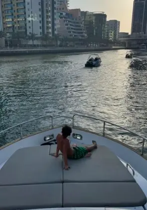 En medio del Golfo Pérsico, Kaku Gamarra mostró en fotografías los paisajes de Dubai en compañía de su esposa e hijos disfrutando las aguas de las orillas de la ciudad en un lujoso yate.