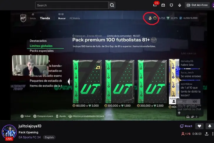 En el streaming, Enciso demostró sus habilidades de juego con el formato Ultimate Team donde el jugador debe ir conformando su equipo, elegir una insignia para su equipo virtual y es allí donde se le escapó la pista de la afición de Julio.