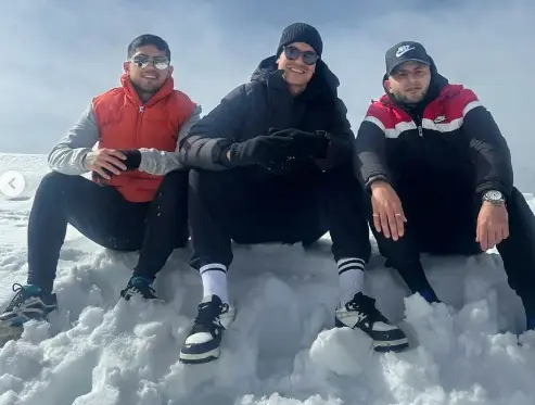 En sus publicaciones en su cuenta de Instagram, mostró como estuvo divirtiéndose en las montañas turísticas de nieve que hay en Grecia en compañía de sus amigos y algunos compañeros de su equipo, el Panetolikos.