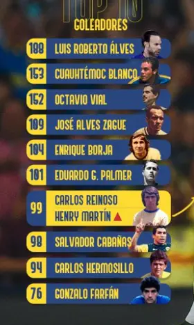 El líder es Luis Roberto Álves con 188 goles seguido por Cuauthémoc Blanco con 153, Octavo Vial con 152, José Alves Zague 109, Enrique Borja 104, Carlos Reinoso y Henry Martin con 99 y Salvador Cabañas con 98 tantos.