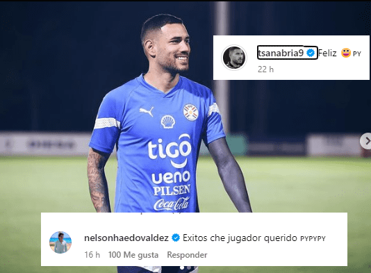 En su cuenta oficial de Instagram, Tony Sanabria subió una foto entrenando con la selección paraguaya de fútbol donde recibió muchas respuestas, entre ellas la del histórico Nelson Haedo Valdez.