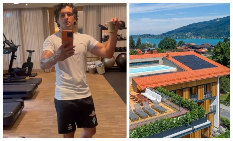 A través de su cuenta de Instagram se lo ha visto ejercitando en compañía de su esposa alemana, Martinka, en uno de los complejos más impresionantes del mundo, el Hotel Des Jahres que tiene sucursales en todo el mundo.