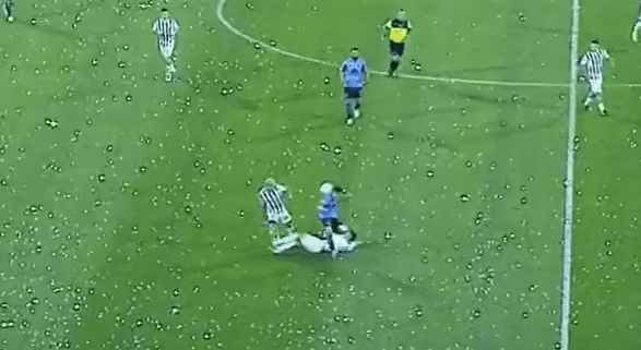 Después de un ataque de la visita, Ramón Sosa avanzó rápidamente y cuando su compañero Lucas Suárez metió una barrida que iba al rival, fue tan fuerte que impactó en el paraguayo.