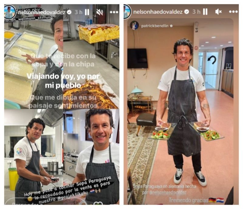 Al ex delantero de la selección paraguaya de fútbol y de Cerro Porteño se lo vio en la función de chef cocinando la popular y tradicional sopa paraguaya para hacerle degustar a sus amigos compatriotas y a los compañeros alemanes que visitaron a Nelson en su domicilio.