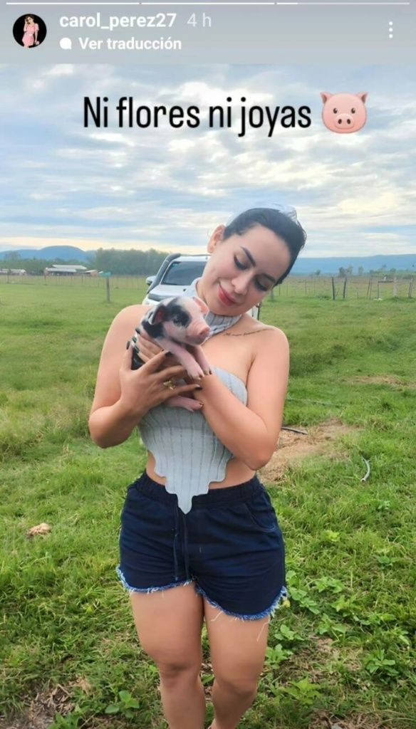 Cumpliendo un sueño de niña, Pérez obseguio un pequeño cerdito que la señora apodo como Mini Pig, que según cuentan lo quería desde hace mucho tiempo.