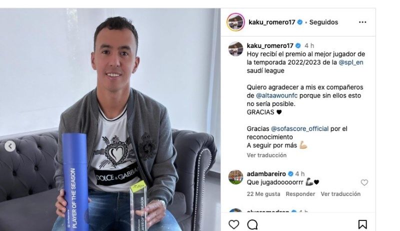 Este jueves, ‘Kaku' recibió un importante reconocimiento gracias a su destacada actuación en la Temporada 2022-2023, donde fue considerado el mejor futbolista de la liga en toda esa campaña.