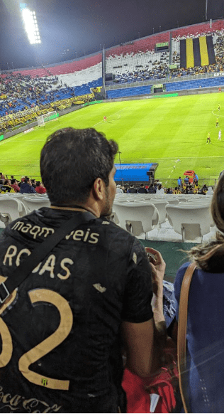 Uno de los hinchas que estuvo alentando a Guaraní fue el ex jugador del club, Robert Rojas que llegó hasta el estadio con una camiseta que él mismo utilizaba en su época de futbolista del legendario.