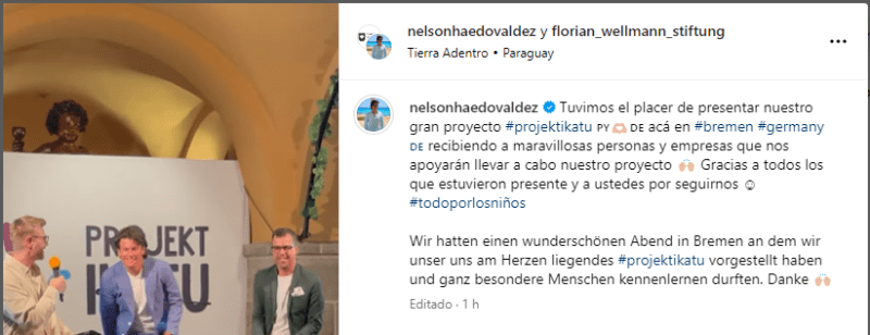 El evento se denominado Projeckikatu en una mezcla de la palabra ‘proyecto’ y de ‘ikatu’ que es una palabra en guaraní traduciendo significa ‘yo puedo’. La intención de la fundación es seguir colaborando con gente de escasos recursos para dar alimentación y educación.