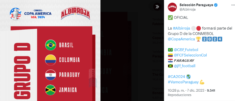 El debut de la Albirroja será el 24 de junio ante Colombia en Houston, Texas mientras que el segundo partido se desarrollará el 28 del mismo mes contra Brasil en Las Vegas para cerrar el grupo ante el equipo de la Concacaf en Austin el 2 de julio.