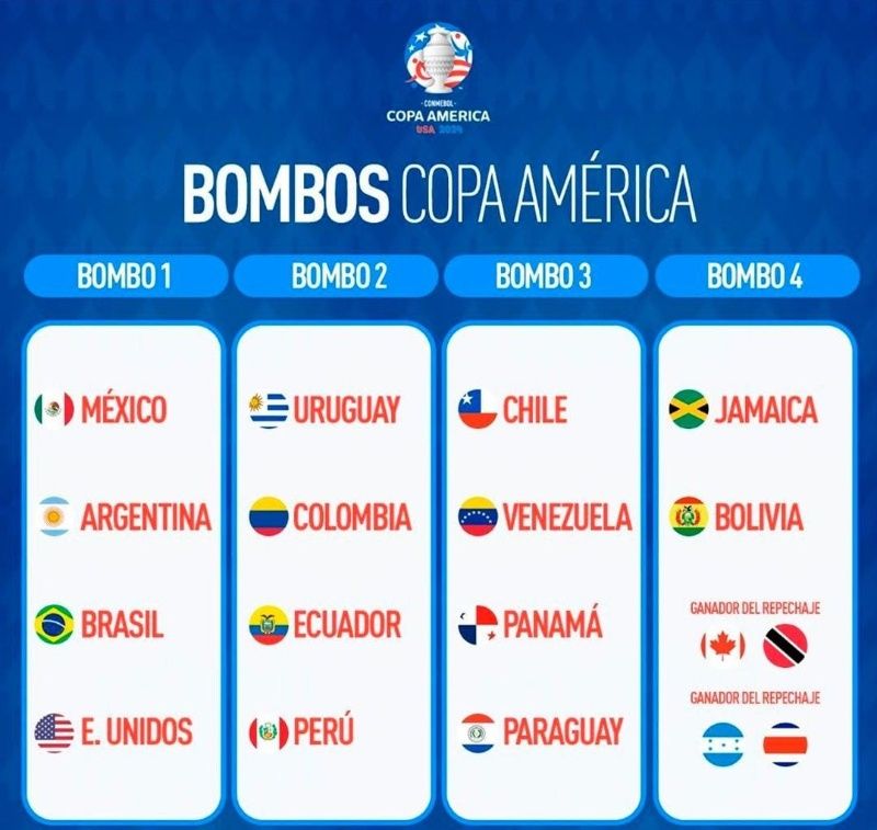 La Confederación Sudamericana de Fútbol confirmó los bombos para el sorteo del próximo 7 de diciembre que se realizará en Estados Unidos para la Copa América 2024 que se disputará en suelo norteamericano en junio y julio de ese año.
