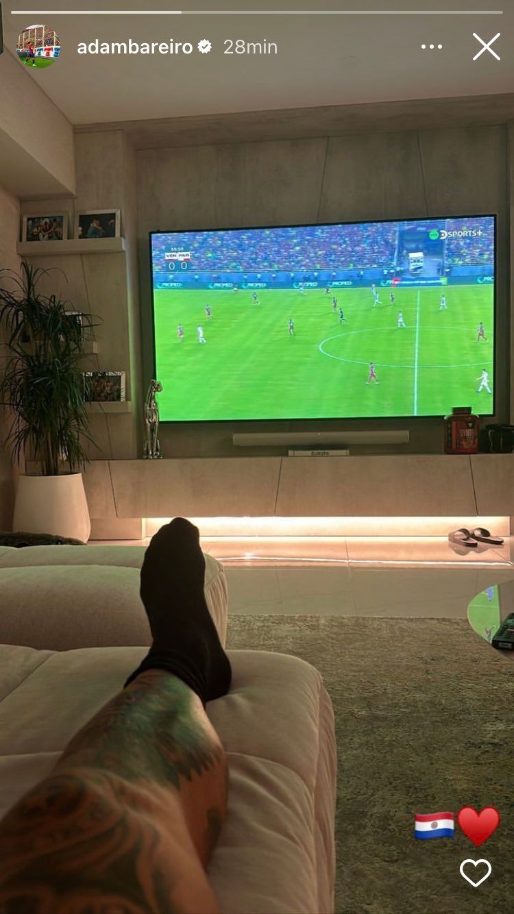 Precisamente, a la hora del partido, Bareiro posteó una historia en Instagram viendo el partido cómodamente desde su sofá cuando la afición pidió por él en el campo.